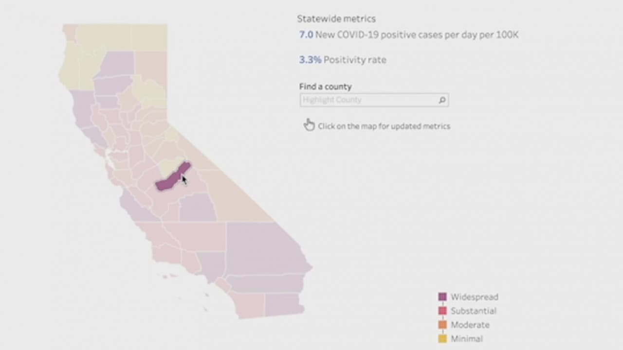 "Se asigna un nivel en función de la positividad de la prueba de coronavirus y la tasa de casos. Como mínimo, los condados deben permanecer en un nivel durante al menos 3 semanas antes de seguir adelante" explica el sitio web del Departamento de Salud Pública de California.