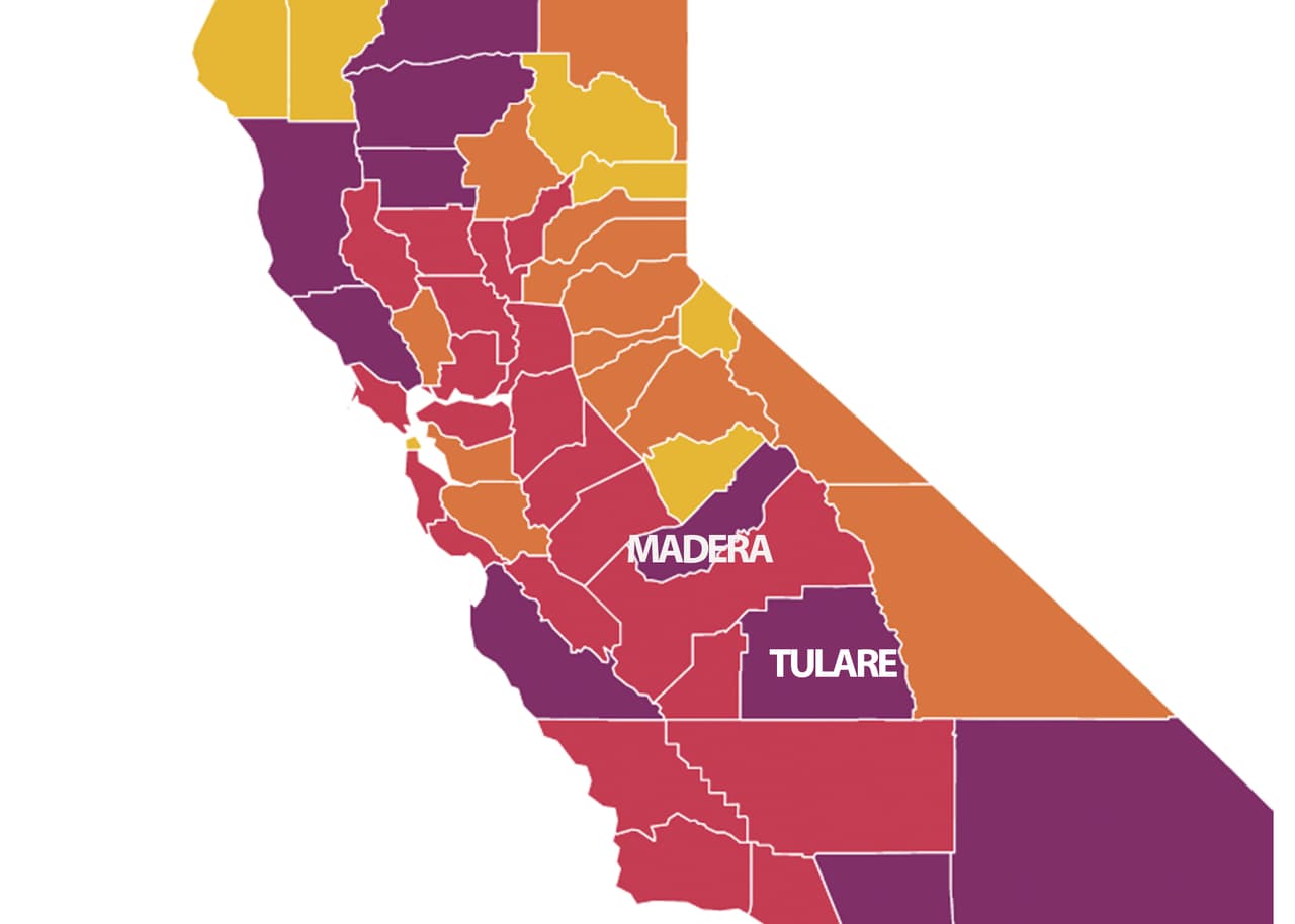 La situación en los condados de Madera y Tulares es que ambos parámetros marcan a la zona como una de alto nivel de propagación del coronavirus, lo cual ha impedido avanzar en la apertura comercial. El condado de Madera informó esta semana que alcanzaron las métricas de la fase siguiente, pero para cambiar de rango deben mantenerse con esos números al menos por otra semana.