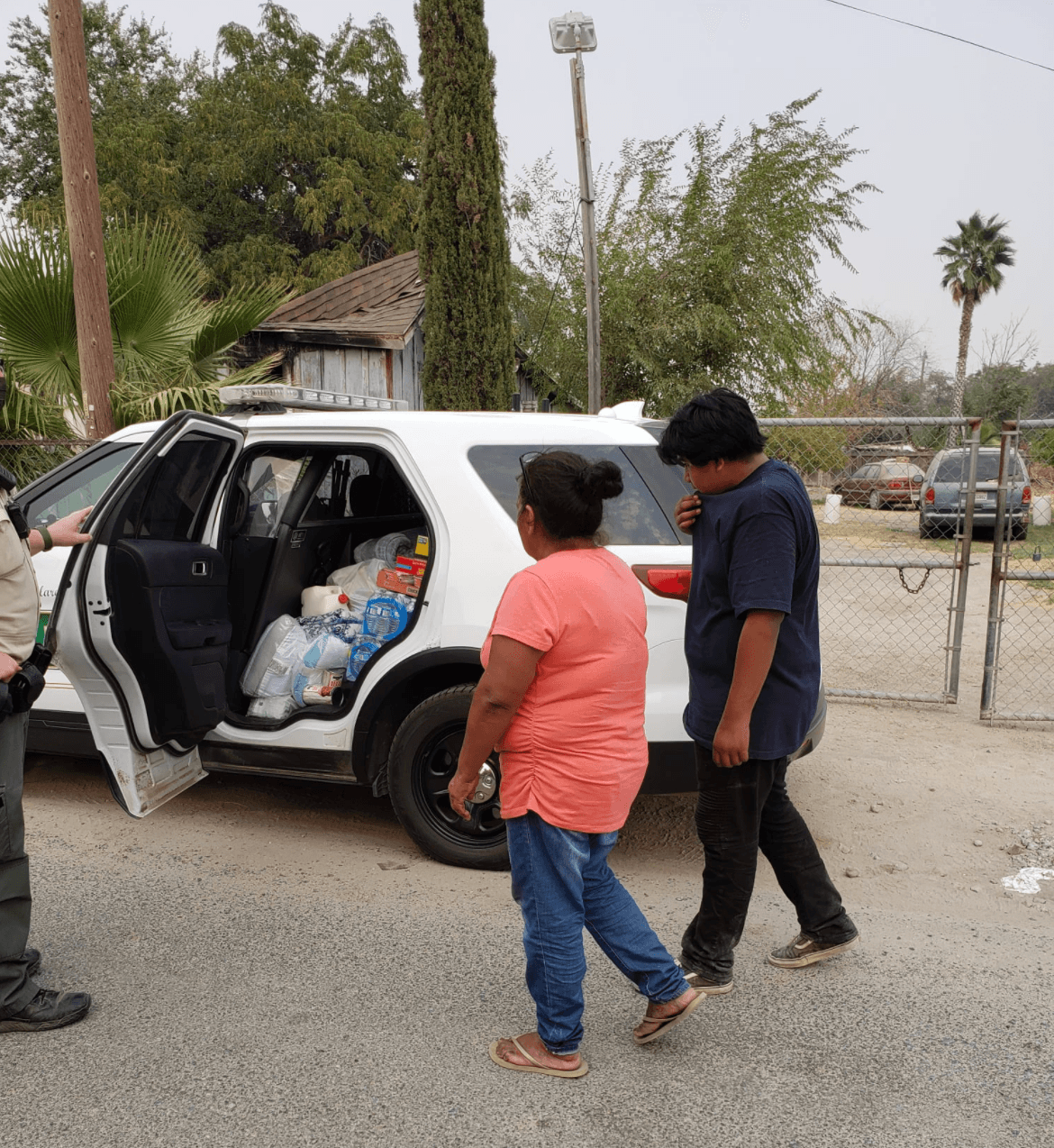 ALPAUGH, California.- No lo podía creer esta familia de Alpaugh, en el condado de Tulare cuando vio llegar a los oficiales policiales con cajas de alimentos, artículos de higiene, ropa y otros.