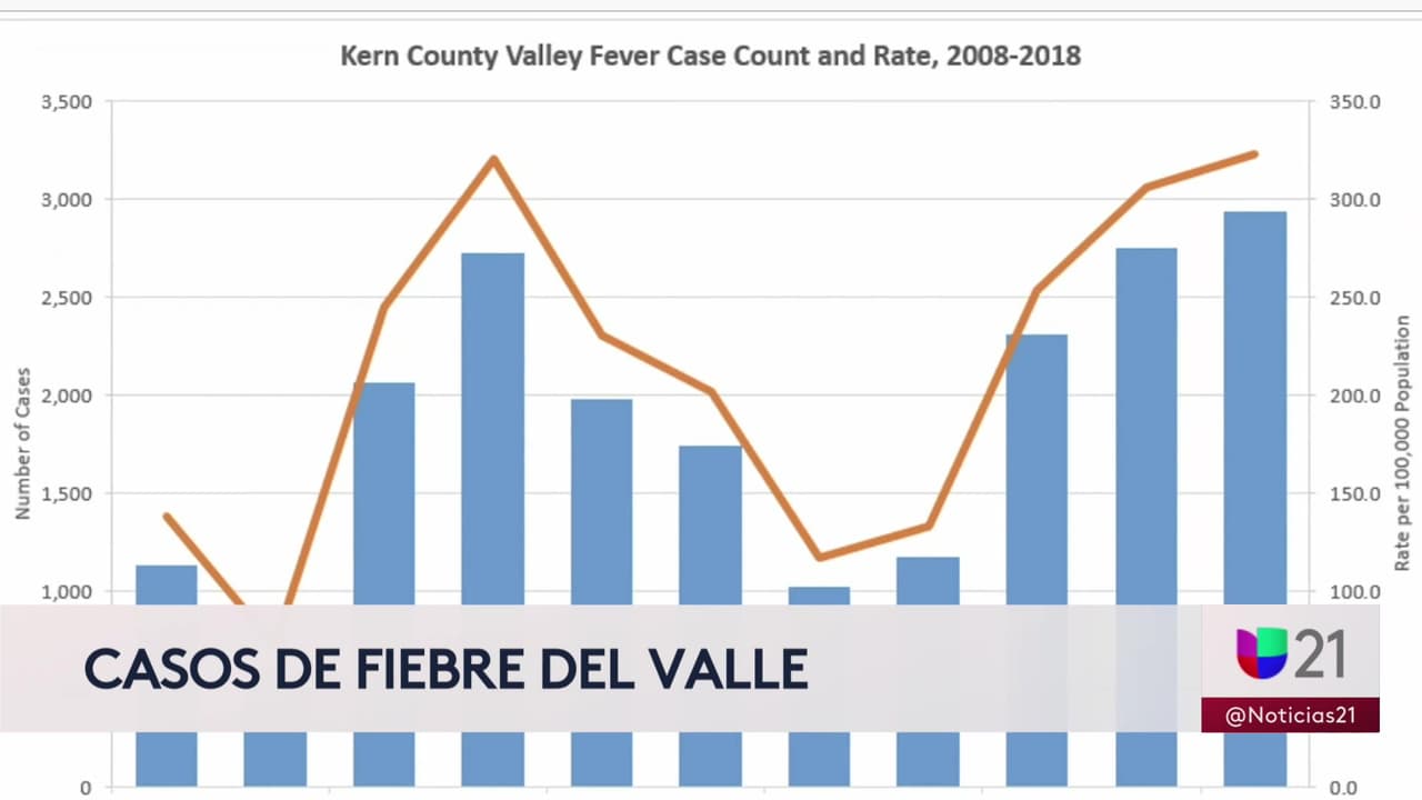 En el 2017 fueron 14,364 casos reportados con la fiebre del valle a nivel nacional, según el Centro para el Control de Enfermedades y Prevención (CDC, por sus siglas en inglés). En el mismo año en el condado de Kern, al sur del Valle Central en California, se conocieron 2929 casos, de los cuales nueve personas perdieron la vida.