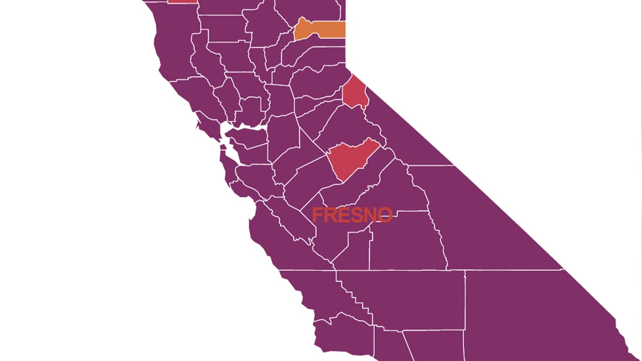 Los condados del Valle Central del estado se hallan en el nivel morado, a excepción del condado de Mariposa. Esto significa que los negocios que pueden abrir con modificaciones son los restaurantes, los salones de belleza, barberías y negocios minoristas.