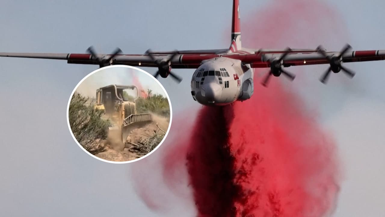 Con aviones y excavadoras, así combaten bomberos el incendio Gifford en California