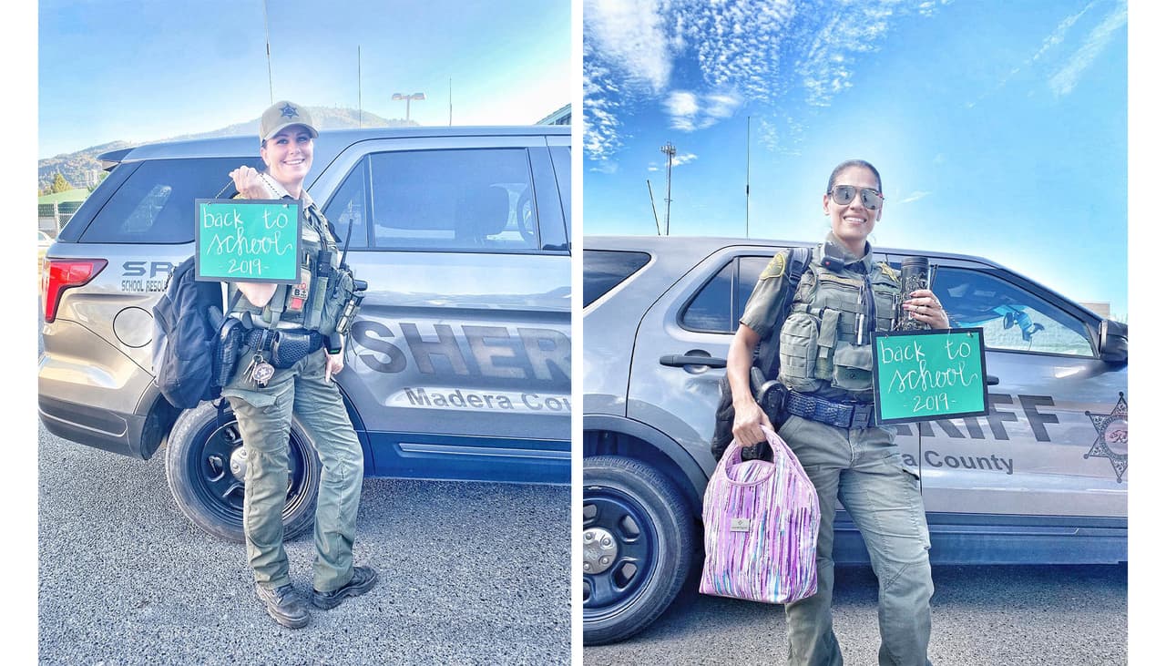 En, tanto, las oficiales Zendejas (a la derecha) y Hooper de la Oficina del Alguacil del condado de Madera, también se sumaron a los buenos deseos a los estudiantes de los Distritos Escolares Golden Valley y Yosemite, respectivamente.