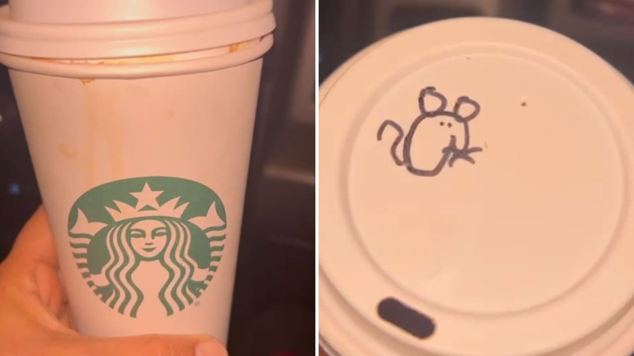 Cuando les entregaron su bebida notaron que en la tapa del vaso les habían dibujado una rata.
