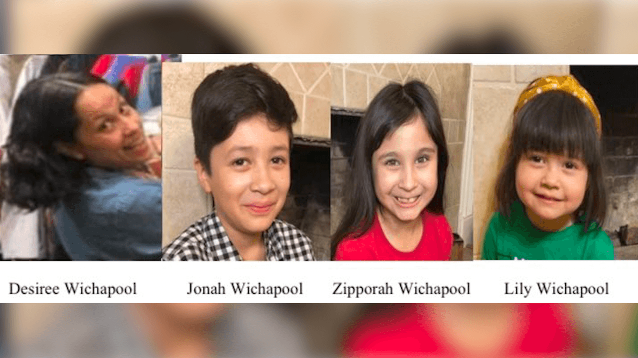 La policía no indicó más detalles de la localización de la mujer identificada como Desiree Wichapool, de 39 años, y de sus hijos Jonah, de 10; Zipporah, de 7 años, y Lily, de 3.