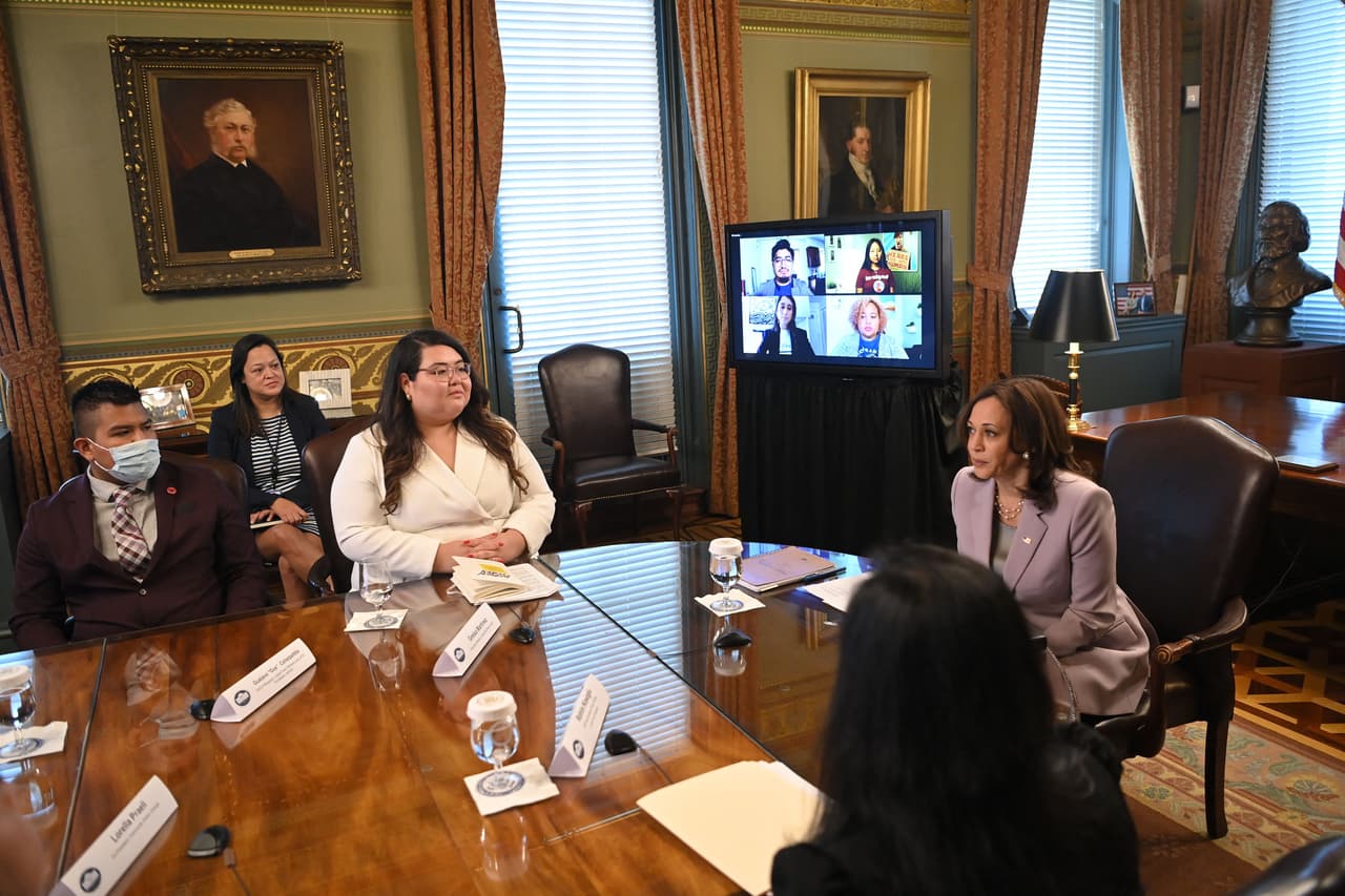 Entre ellos estaba Gustavo “Gus” Cohetzaltitla, un joven beneficiado con el programa DACA, quien representó a la Unión de Campesinos (UFW, por sus siglas en inglés) en la conversación con la vicepresidenta de Estados Unidos.