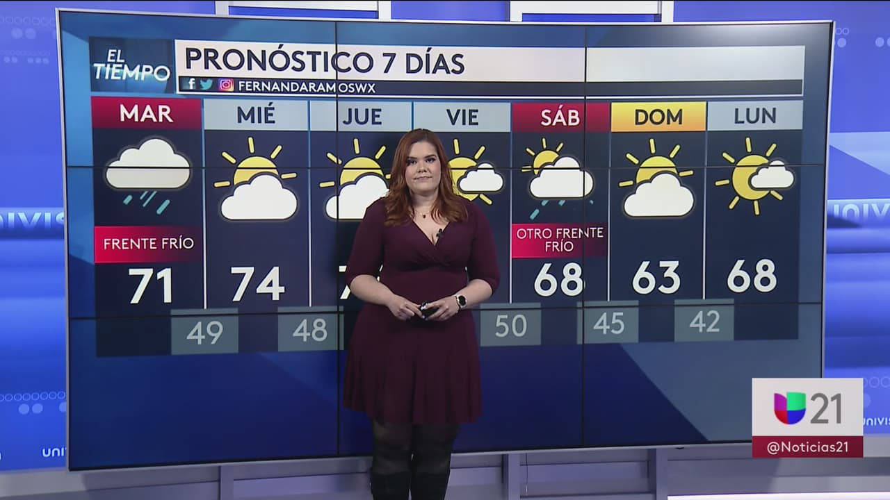 El paso de un frente provocará lluvias ligeras para la mañana del martes en zonas del Valle Central. Las temperaturas máximas llegarán a niveles superiores a los 70 grados.