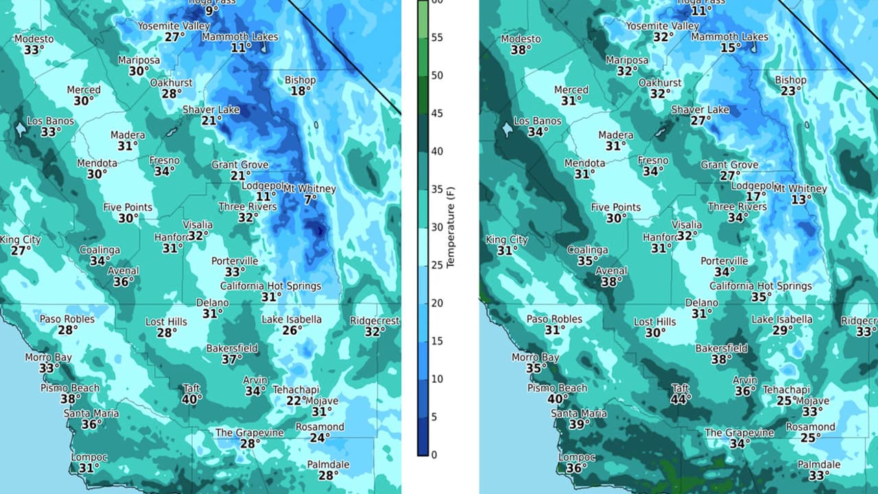 Se esperan temperaturas en los 30ºF para ciudades como Fresno, Leemore, Visalia, mentras que las máximas no superarán los 56º o 57ºF durante la tarde del martes.