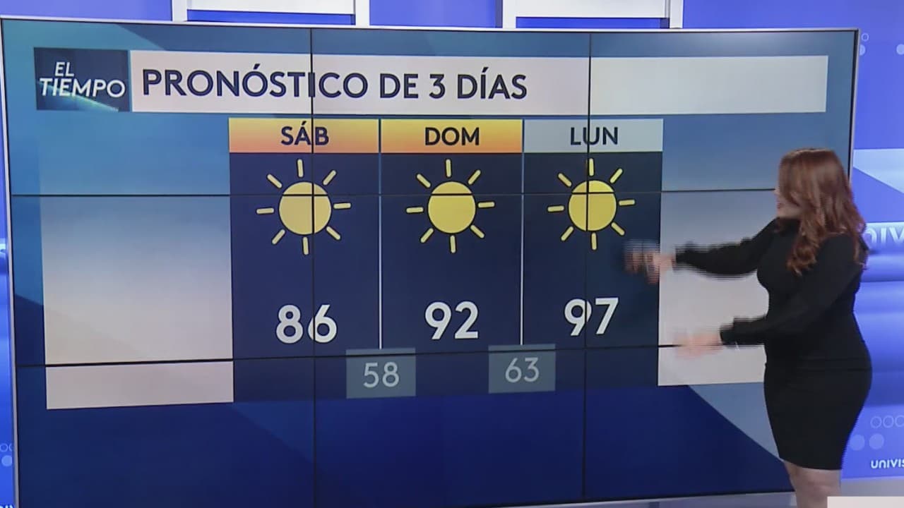 Prepárese porque prevalecen los cielos despejados y soleados en la región con temperaturas máximas de 86°F para el sábado, 92°F para el domingo y 97°F para el lunes. Manténgase bien hidratado.