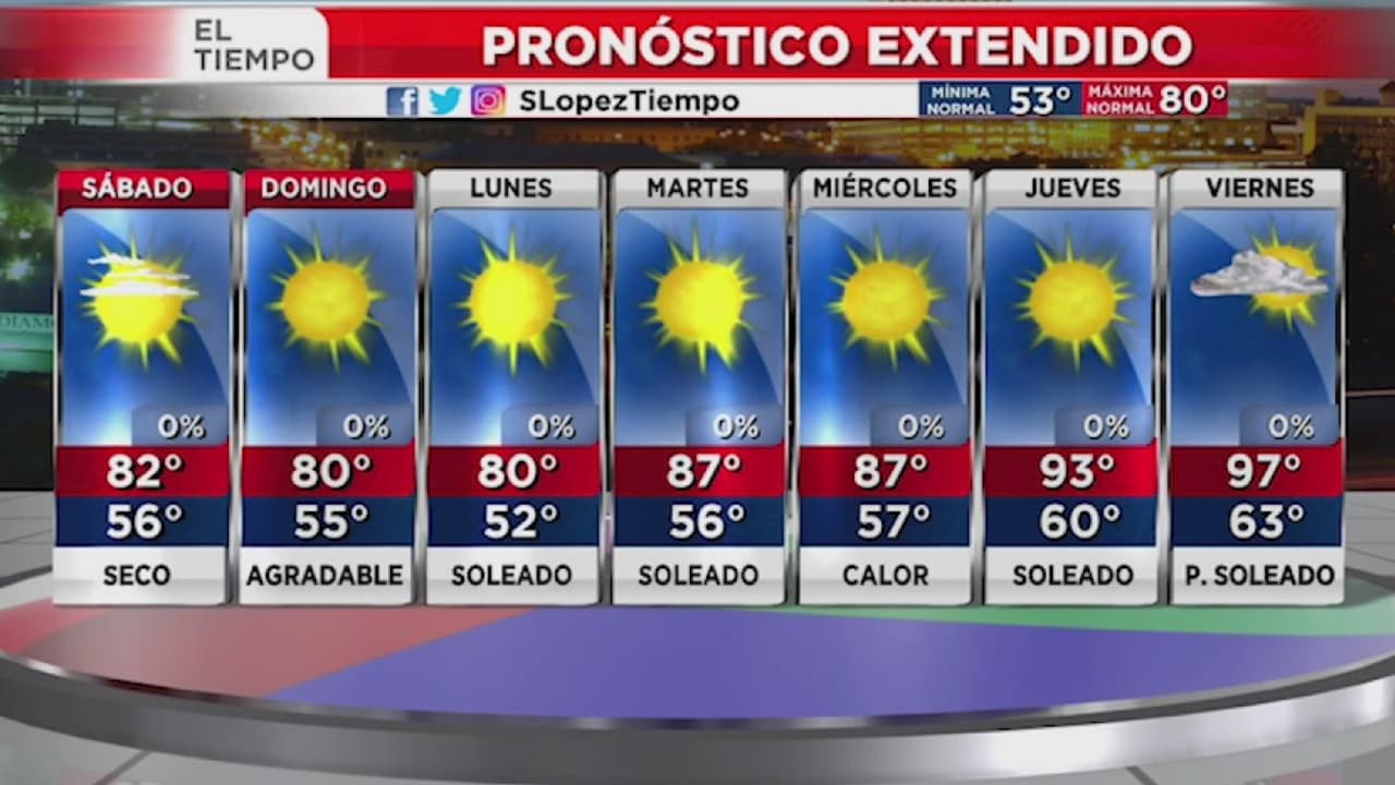 Las temperaturas máximas estarán en el rango de los bajos 80 grados, con cielos despejados y algunos vientos.