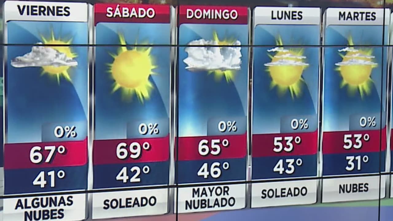 Se espera que las temperaturas máximas estén cerca de los 70 grados, con condiciones ligeramente nubladas y sin probabilidad de lluvia.