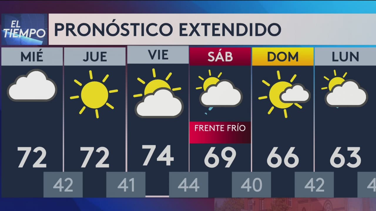 Se espera que durante el día predominen los cielos mayormente nublados, con temperaturas máximas superiores a los 70 grados.