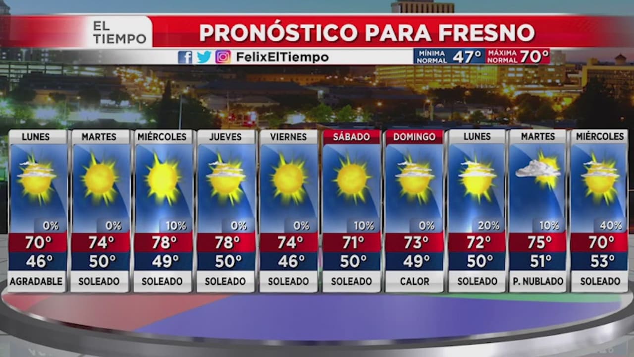 Pronóstico: lunes con condiciones soleadas y estables en Fresno