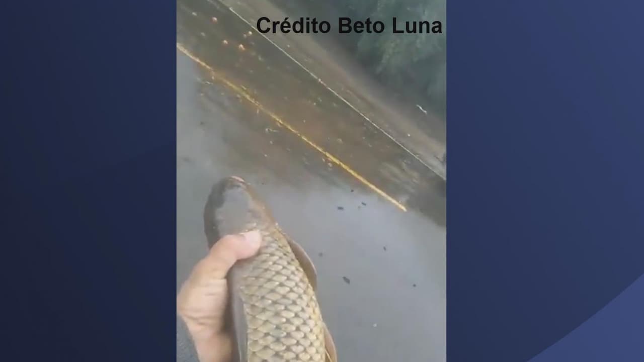 “La gente está en la presa pescándolos y aquí están gratis con las manos agarrándolos”, un residente compartió en un video en redes sociales de cómo encontró peces que han sido arrastrados por la corriente hasta los campos agrícolas.