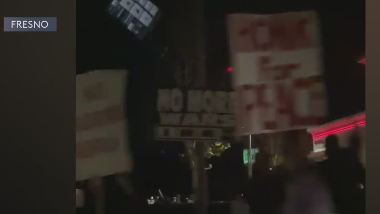 Algunos habitantes del valle central se reunieron en las calles al norte de Fresno para manifestar su rechazo a un conflicto armado.