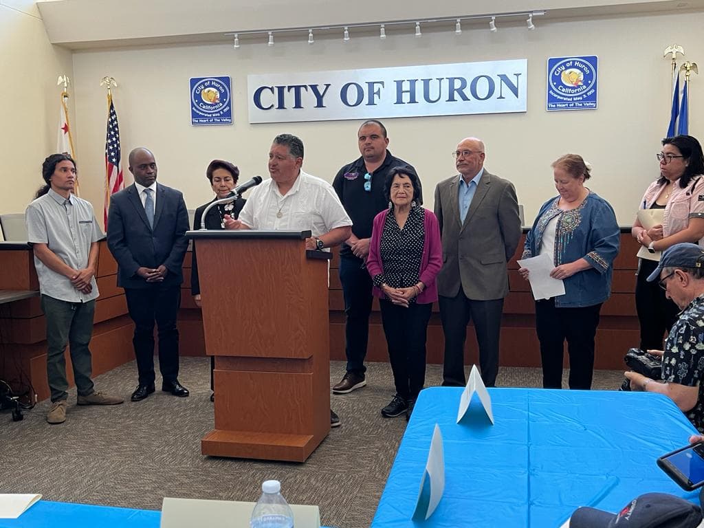El superintendente estatal se reunió a puerta cerrada con líderes escolares locales, y autoridades de Hurón, y activistas entre ellos Dolores Huerta para conversar sobre los desafíos relacionados con el transporte en esta comunidad rural.
