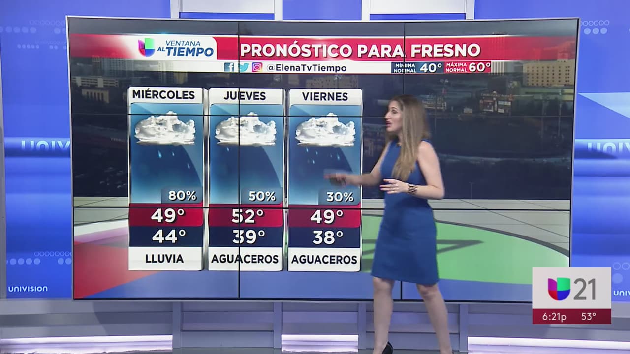 Lluvia en el Valle Central y nieve en la Sierra Nevada con acumulados significativos, mientras el termómetro alcanzará temperaturas máximas de 49 grados Fahrenheit en Fresno.