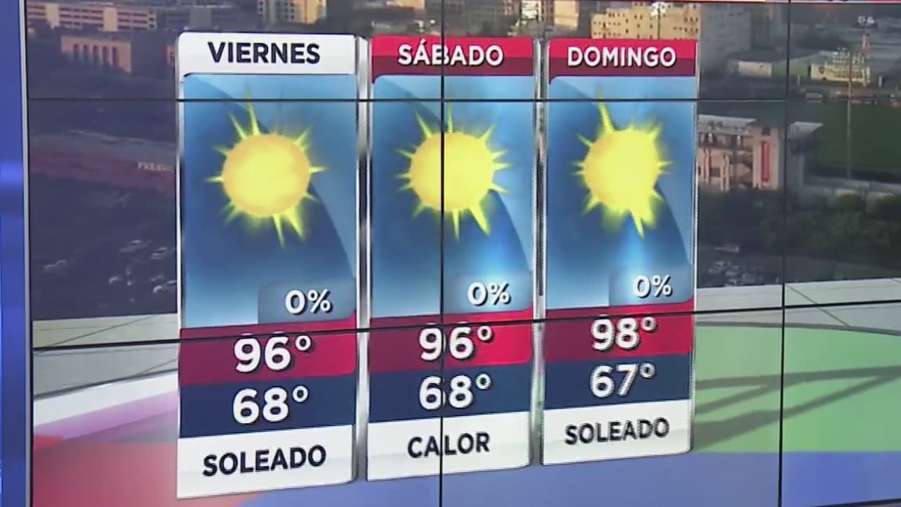La tendencia de verano continúa, con condiciones soleadas y temperaturas calurosas, en el rango de los mediados 90 grados.