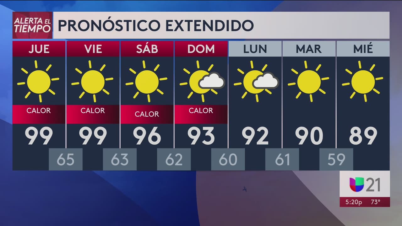 Un sistema de alta presión está generando altas temperaturas en la región, para este jueves se esperan cielos soleados y máximas de hasta 99°F. Tome sus precauciones porque la calidad del aire continuará afectada.