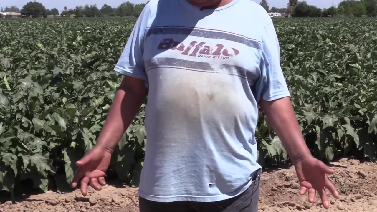 Un trabajador del campo cortaba berenjenas mientras le robaban el convertidor catalítico de su auto, en Fresno.
