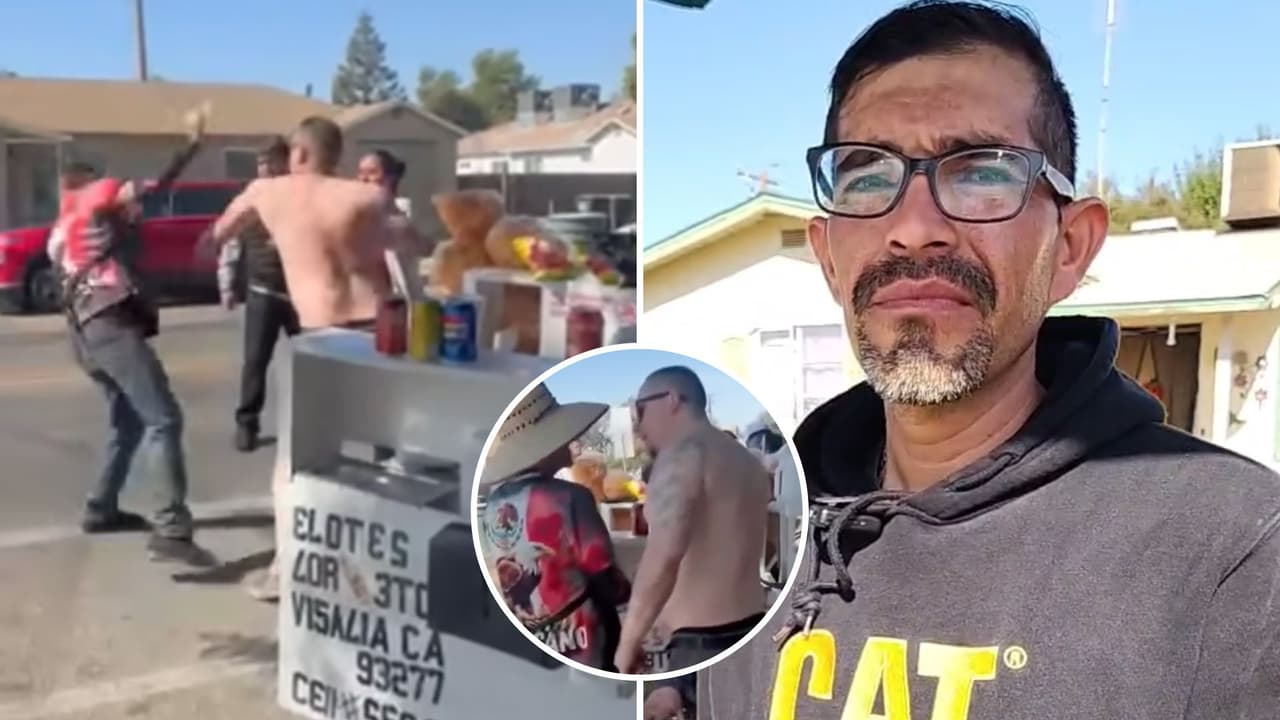 VISALIA, California.- Un vendedor ambulante fue atacado por un hombre mientras vendía elotes a un grupo de estudiantes. El momento del incidente quedó captado en video y generó una ola de indignación en redes sociales.
