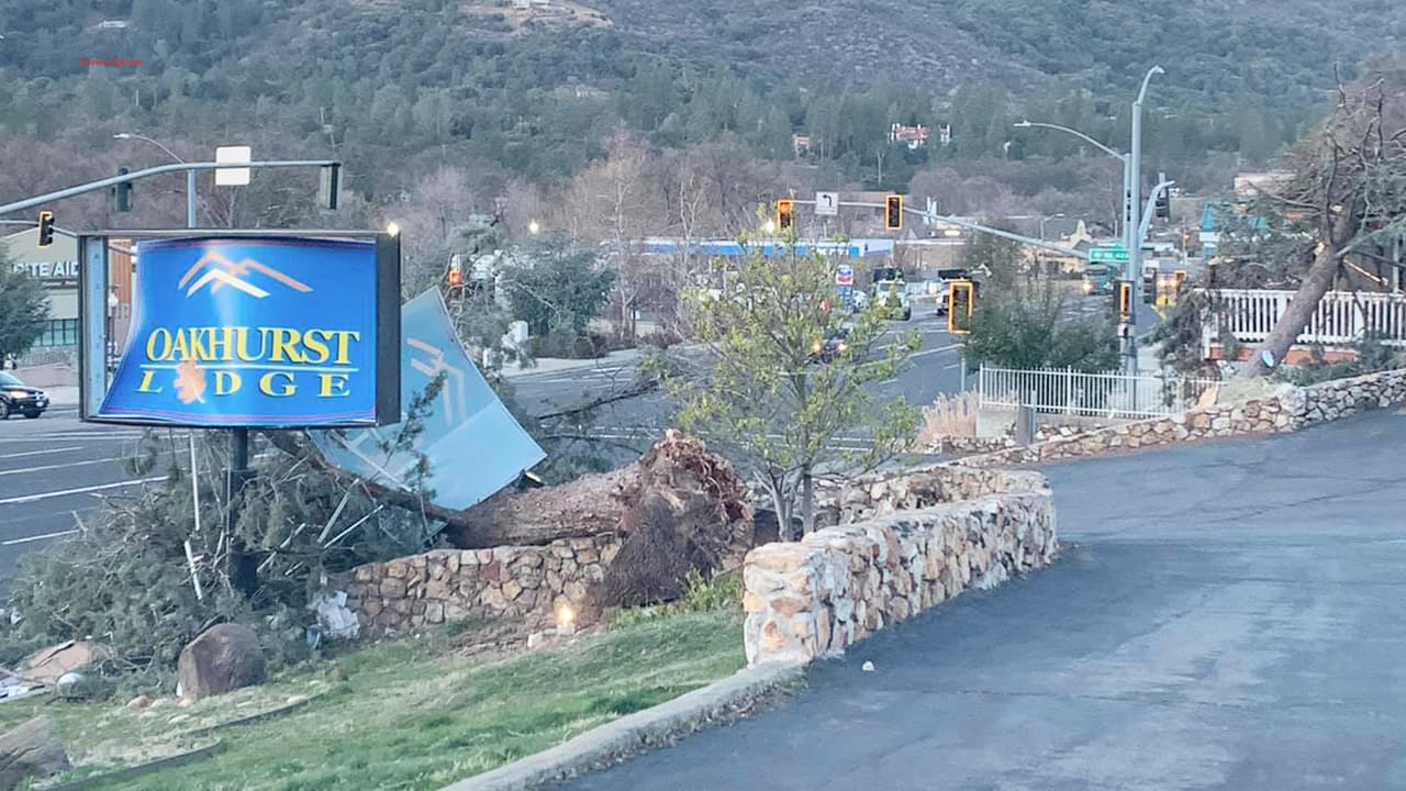 "Tenemos varios informes de árboles caídos que bloquean carreteras y postes eléctricos caídos cerca de Oakhurst, Bass Lake y N Fork debido a vientos muy fuertes y racheados esta noche", reportó el Servicio de Metereología de Hanford.