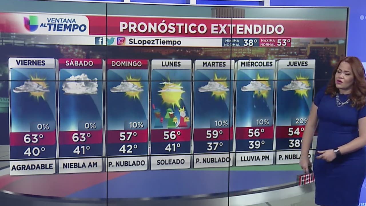 Prepárese para una mañana con niebla densa en gran parte del área de cobertura, por la tarde cielos con ligera nubosidad y temperaturas máximas de 63 grados Fahrenheit.