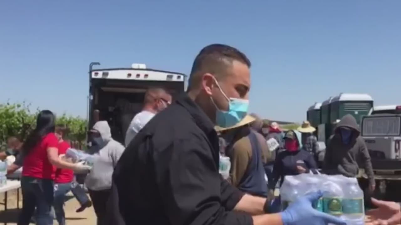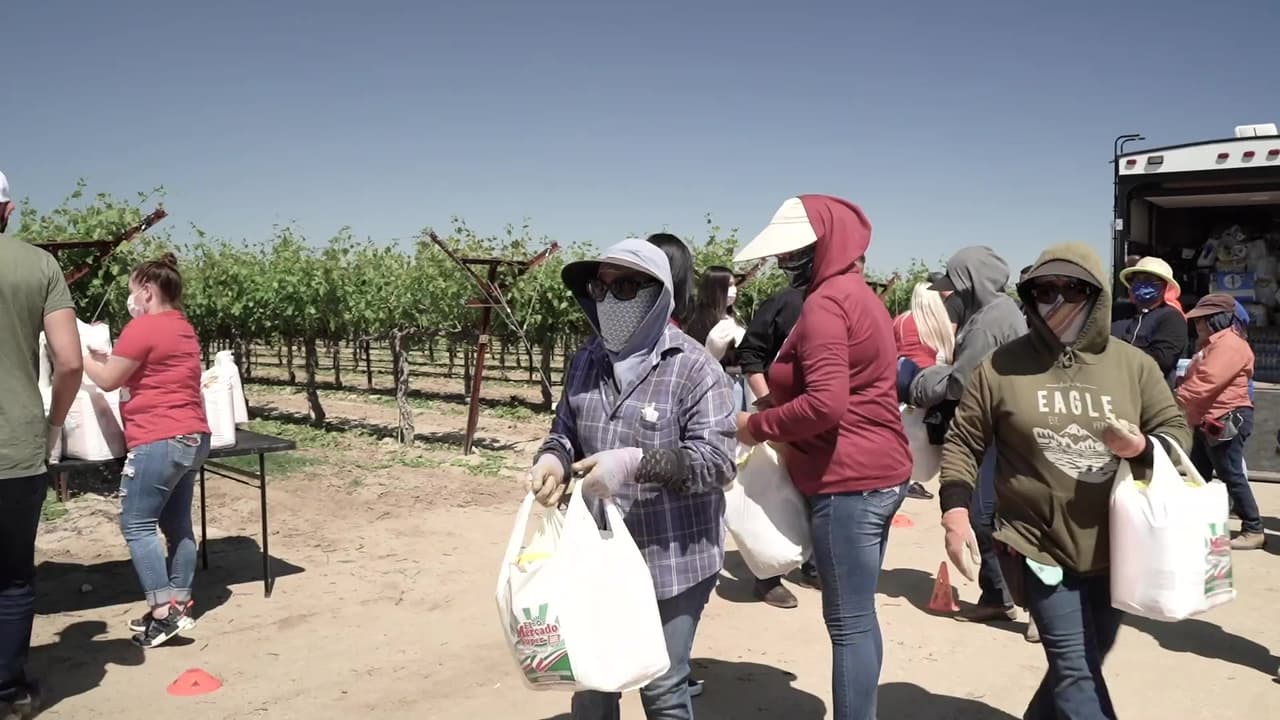 Un grupo de buenos samaritanos recolectan alimentos, artículos de higiene y otros productos de primera necesidad para repartir entre los campesinos de la zona. Este fin de semana, los beneficiados fueron cerca de mil trabajadores de Sanger, en el condado de Fresno.