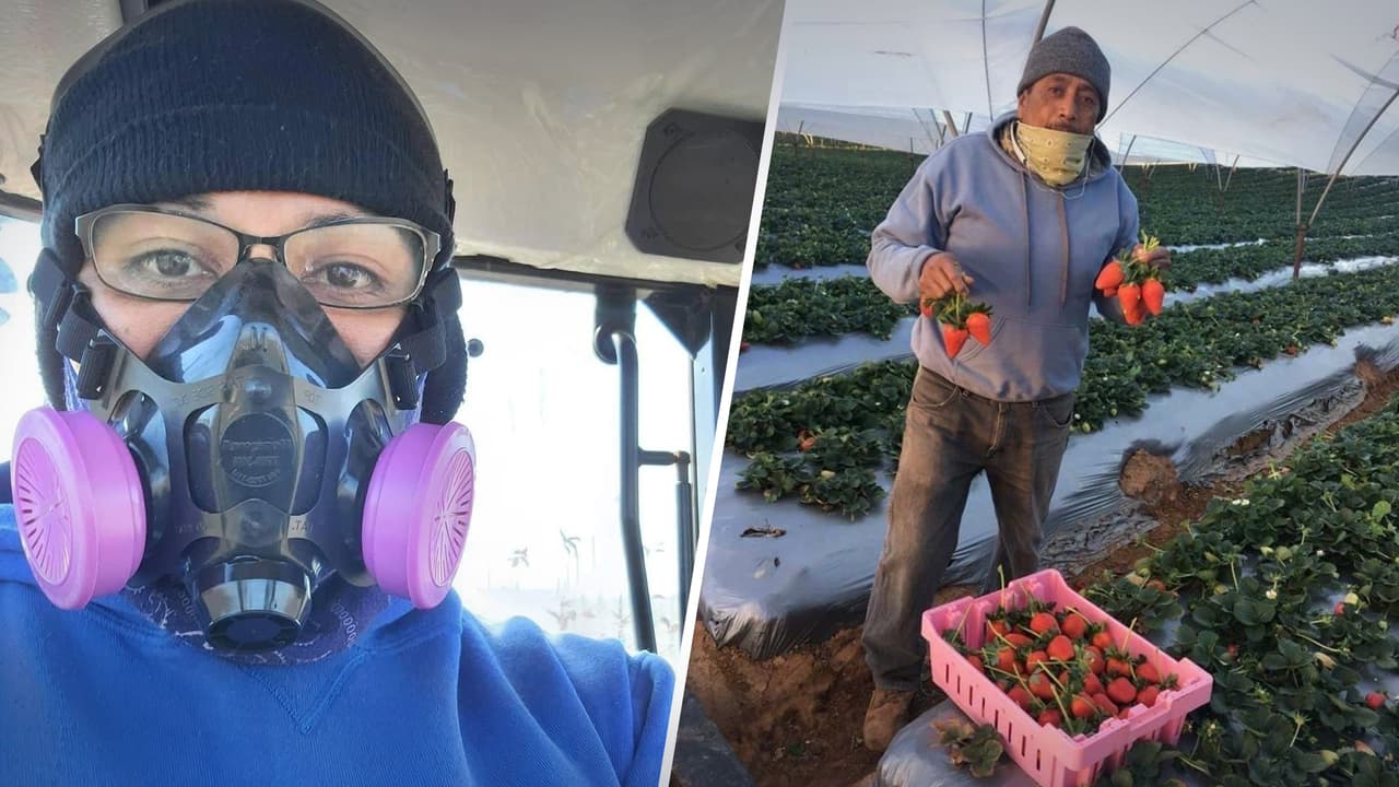 Agachado durante 8 horas, Adrián cosecha fresas y bayas en Vista, California. En su jornada tan larga y pesada solo tiene en mente una cosa: proveer a su familia.