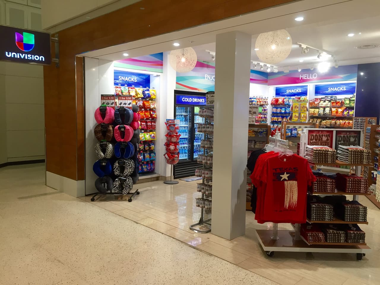 Las tiendas con la marca Univisión tienen una variedad de productos, incluyendo bocadillos y bebidas representativos de Latinoamérica, como también productos esenciales de viaje.