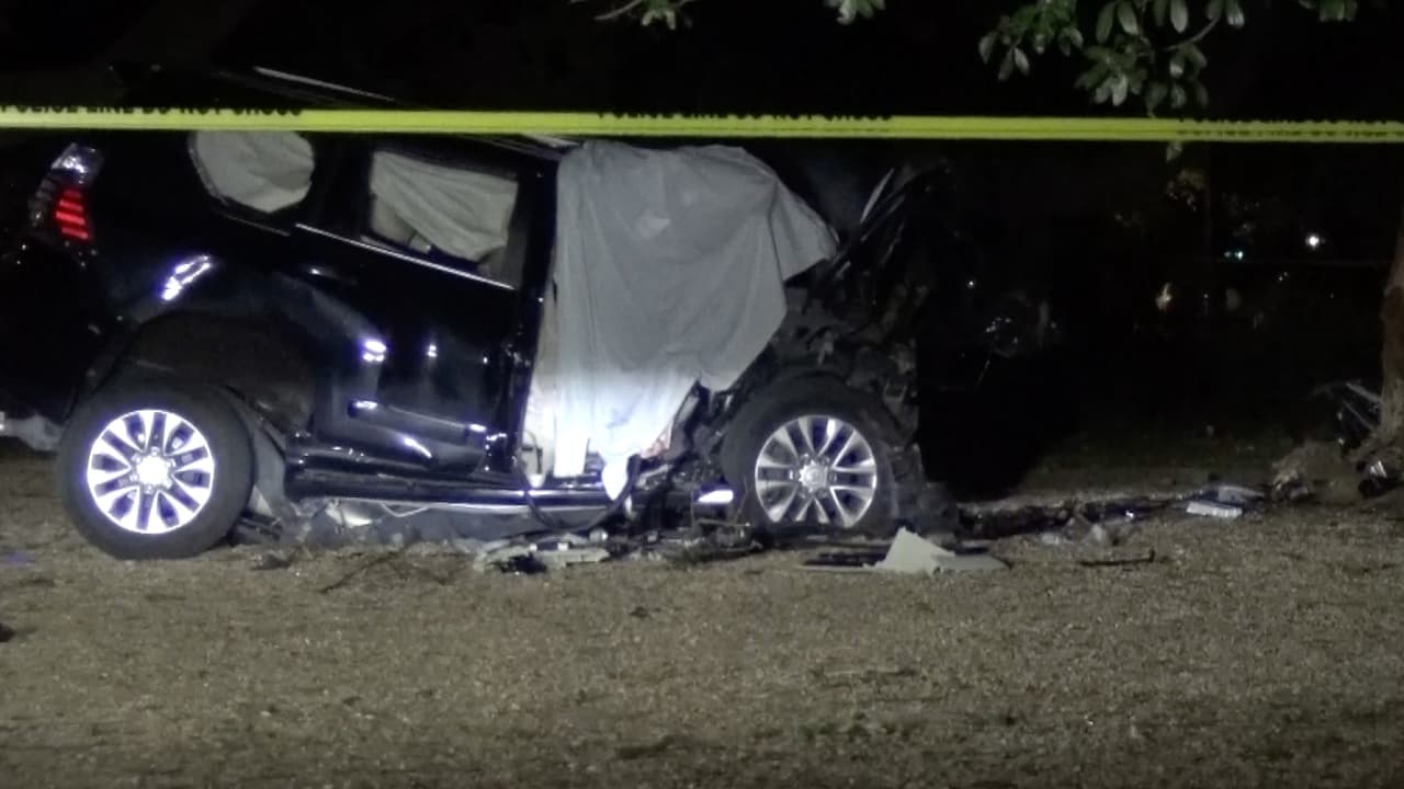 La camioneta viajaba a exceso de velocidad y chocó contra el árbol que estaba en el parque Baldwin, según informó la policía. Se investiga si el alcohol fue una de las causas del accidente.