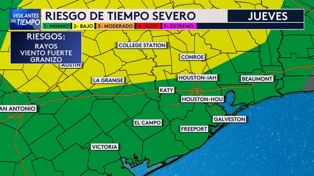 Rayos, viento fuerte y posibilidad de granizo para Houston no solo en la noche del jueves, también en la madrugada y mañana del viernes, explica nuestro meteorólogo de Univision 45, Anthony Ortíz.
