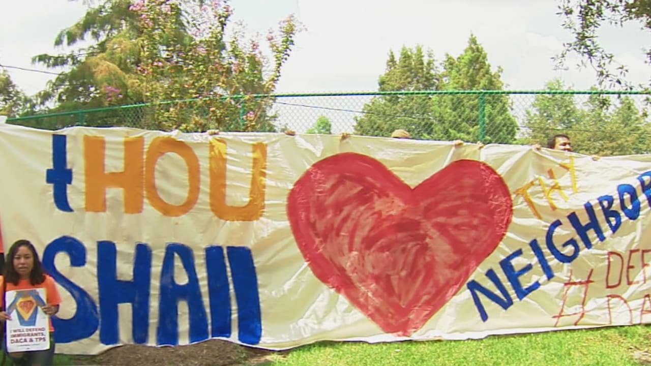 Un grupo de personas de diferentes organizaciones se reunió de manera pacífica para rechazar la presencia del presidente de Estados Unidos en la ciudad. Los manifestantes aprovecharon para pedirle al mandatario que no elimine DACA.