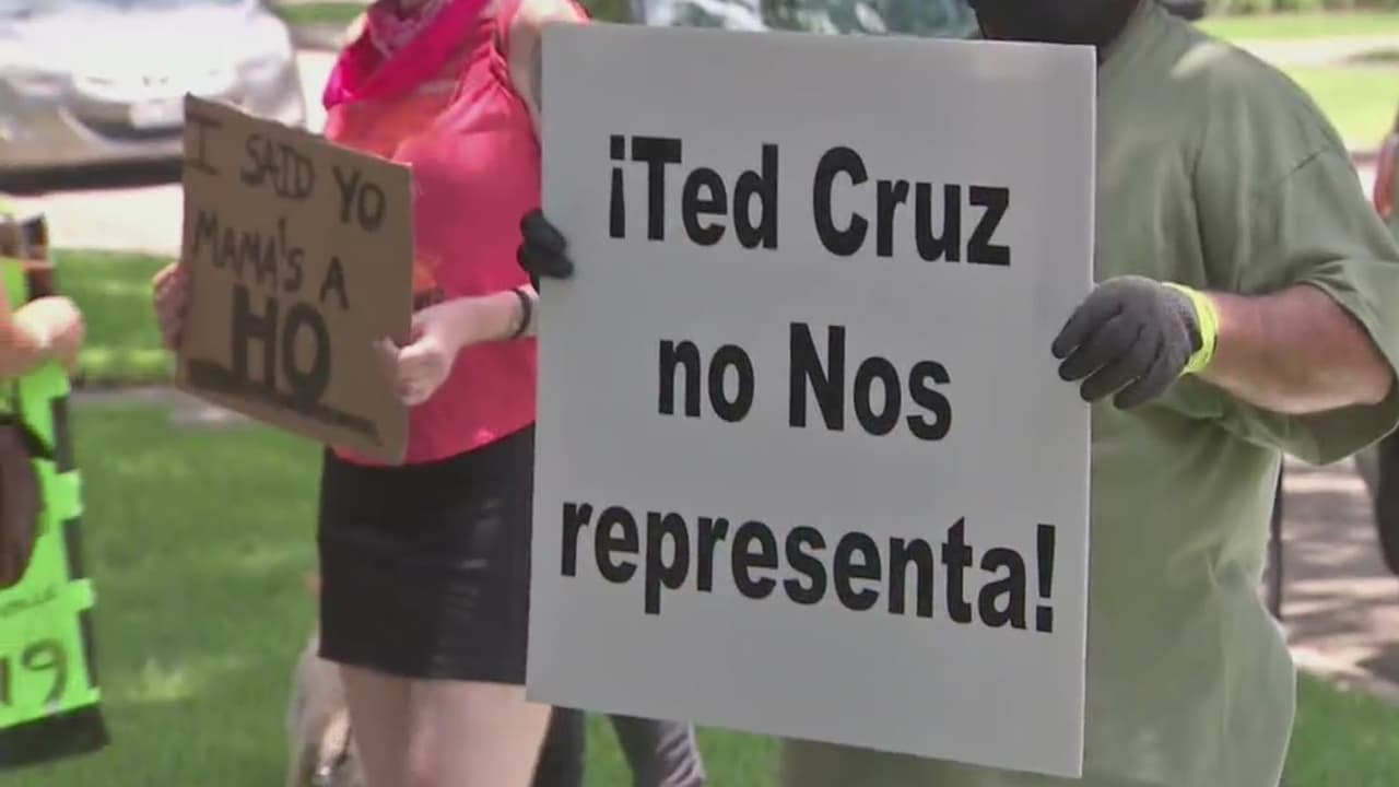 Pancartas, piñatas y mensajes tildando a Ted Cruz como mentiroso, fueron parte de la protesta que se realizó la tarde de este domingo a las afueras de la vivienda del senador. "Ha sido una pieza clave para que Texas sea una comunidad de racismo, de tantos atropellos", indicó una de las manifestantes.