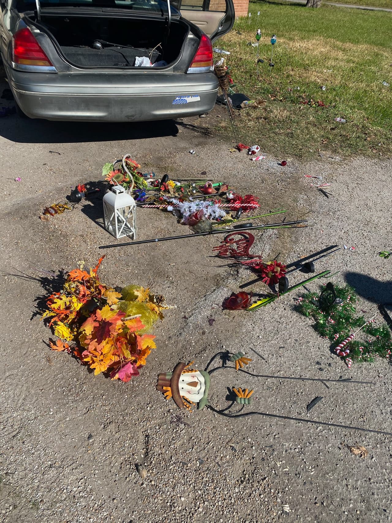 El capitán John Morrison, del Distrito 3 del sheriff del condado Harris (HCSO), publicó en Twitter las imágenes de los objetos que les incautaron en las que se observan cruces, flores artificiales, tarjetas, decoraciones navideñas y hasta una lámpara.