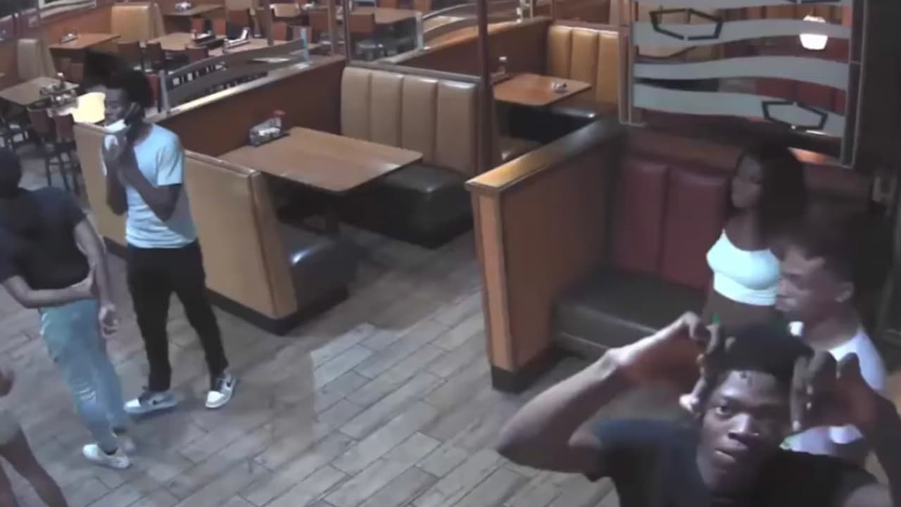 Eran cuatro hombres y mujeres todos afroamericanos quienes se salieron del restaurante sin pagar y una mujer atacó a una empleada que los estaba grabando con su celular.