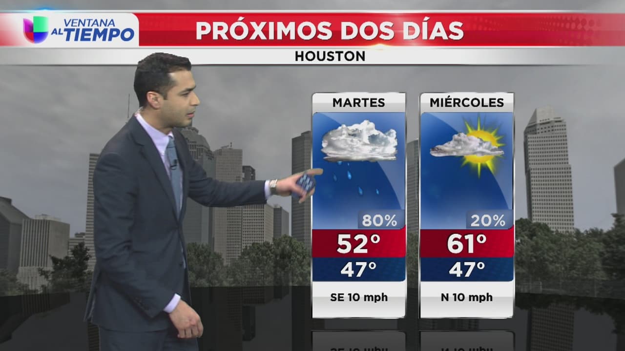 Según el pronóstico, una masa de aire cálido estará llegando desde el Golfo de México provocando un 80% de posibilidad de precipitaciones. La temperatura máxima será de 52 grados Fahrenheit mientras que la mínima será de 47 grados.