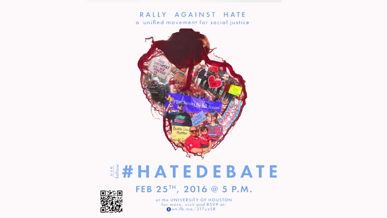 Una coalición conformada por varias organizaciones de activistas, entre las que se destacan Fe y Justicia, Centro de Trabajadores, Partido Verde del Condado Harris, Latinos, Inmigrantes y Triunfadores, United We Dream y Movimiento Socialista de Houston, organizó una protesta contra Donald Trump y los republicanos, la cual bautizaron como "Protesta en contra del Debate del Odio".