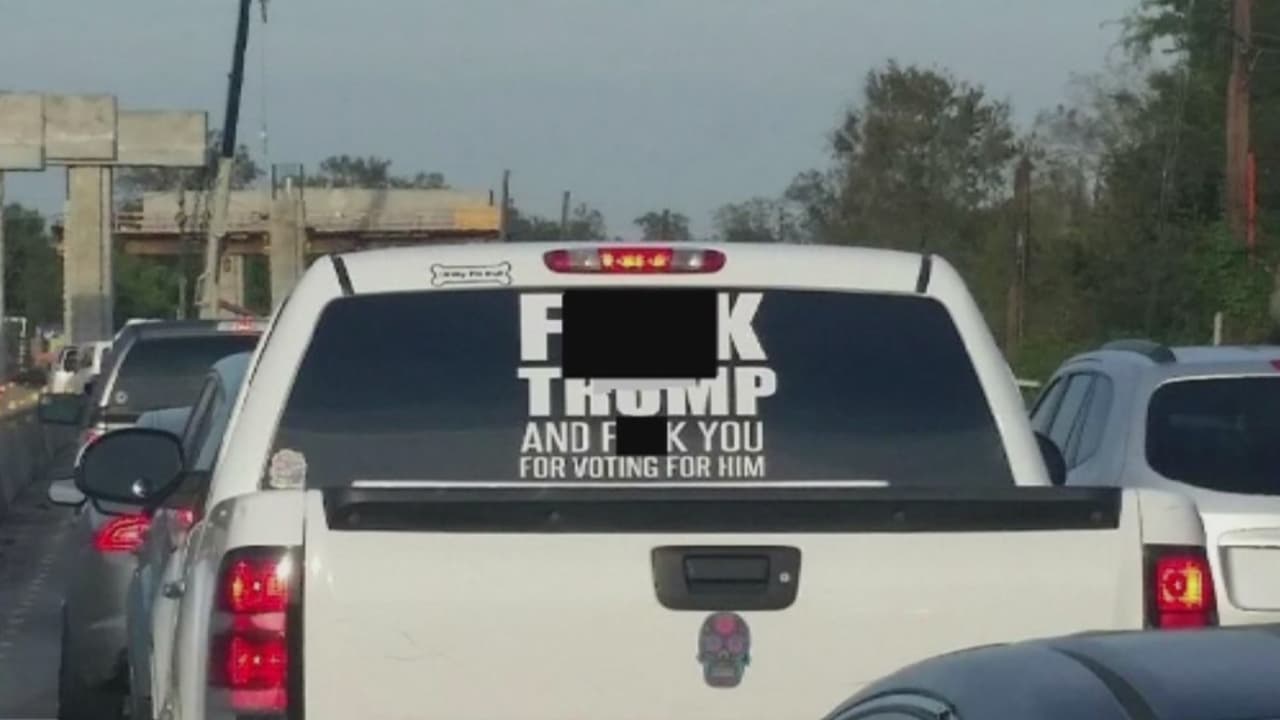 Arrestan a mujer que transportaba en su camioneta un mensaje en contra del presidente Donald Trump