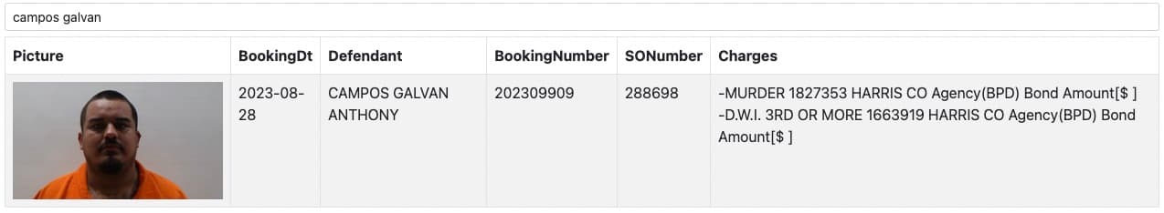 Campos Galván tiene amplio historial delictivo en el condado Harris y al menos un arresto en el condado Montgomery por robo.