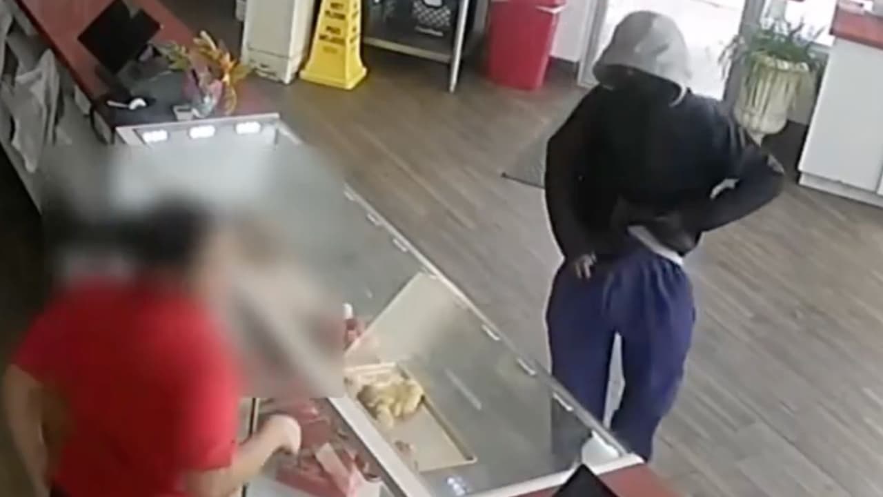 Dos hombres armados entraron a la tienda de donas, caminaron hacia el mostrador, sacaron armas de fuego y saltaron al interior del área de caja.