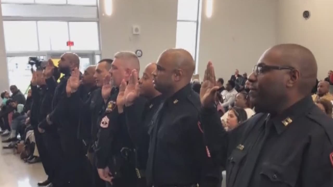 Ascienden y juramentan a varios uniformados de la policía del Distrito Escolar Independiente de Houston