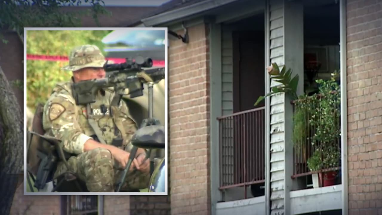 El sospechoso estuvo atrincherado durante cuatro horas antes de entregarse pacíficamente a las autoridades y fue detenido por el operativo S.W.A.T.
