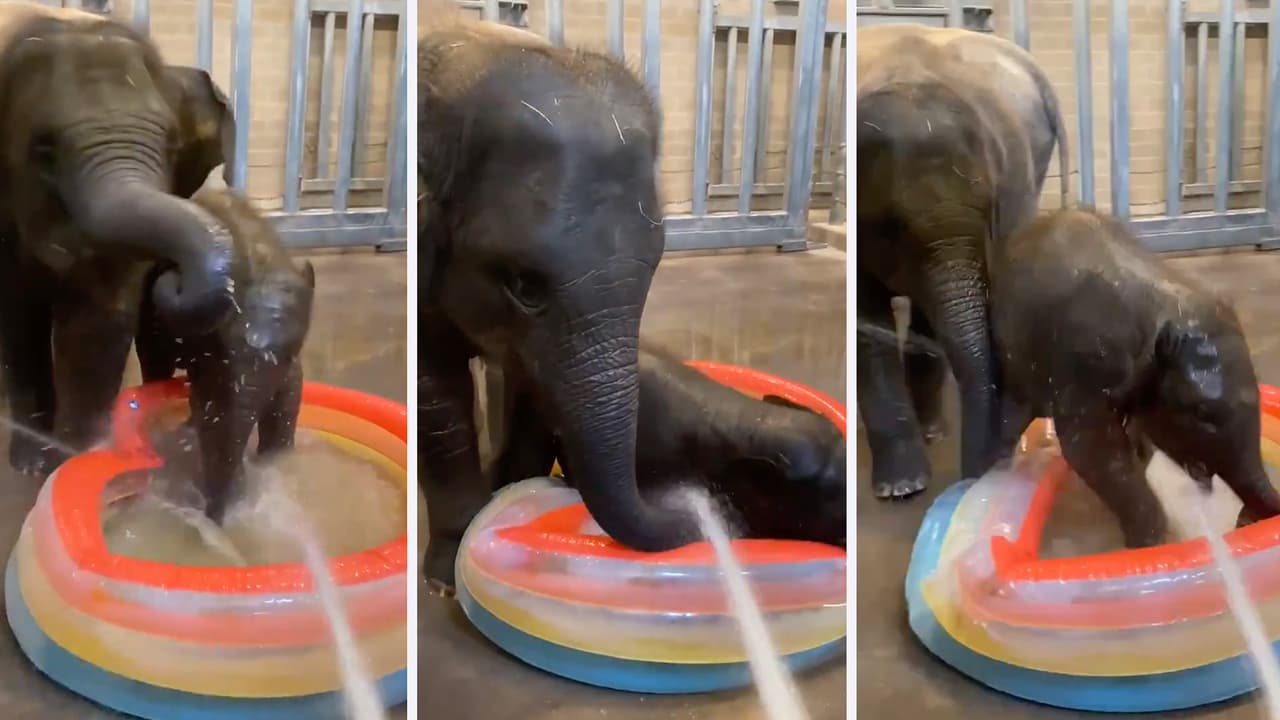 Así disfrutan la hora del baño los elefantes del Zoológico de Houston