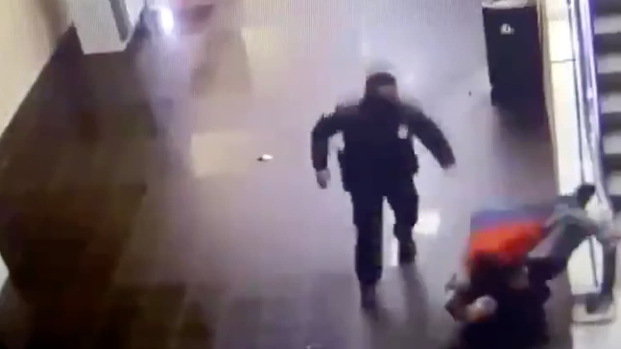 La agresión que quedó grabada en cámaras de seguridad ocurrió el 29 de enero de 2021 mientras el oficial caminaba por uno de los pasillos en su trabajo como vigilante en el centro comercial.