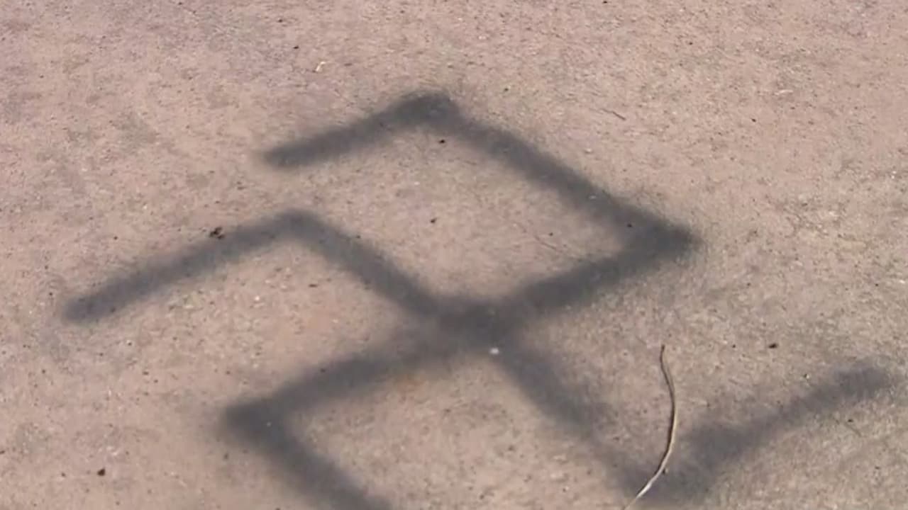El o los sospechosos pintaron esvásticas y el mensaje “solo blancos” en la pista atlética del plantel educativo. La policía pide ayuda de la comunidad para dar con los responsables del acto vandálico.