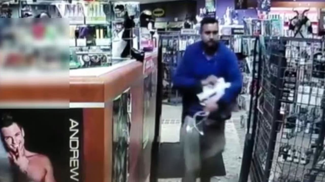 Cámaras de vigilancia captan el momento en el que un hombre intenta intercambiar un voltímetro por un costoso juguete sexual en un establecimiento, no lo logra y sale huyendo con el artículo. Las autoridades piden ayuda para identificarlo, ofrecen hasta 5,000 dólares de recompensa, los informes se pueden proporcionar llamando al 713-222-TIPS (8477),
