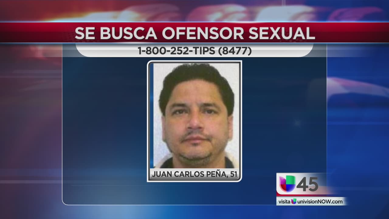 Juan Carlos Peña, de 51 años de edad, es un delincuente sexual que se encuentra prófugo. Las autoridades ofrecen 8,000 dólares de recompensa por información que conduzca a su captura.