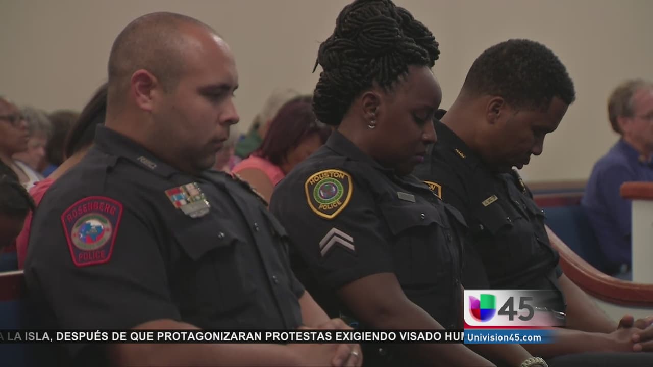 Varias agencias policiales del área de Houston se reunieron con la comunidad en una ceremonia para recordar a los policías caídos en Dallas y para propiciar la unidad en medio de las tensiones raciales