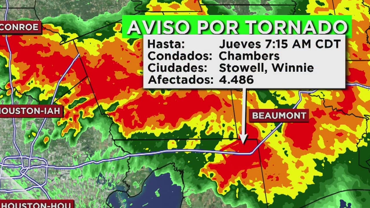 Aviso de riesgo de tornado por las malas condiciones del tiempo en el condado Chambers